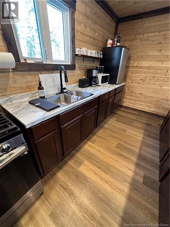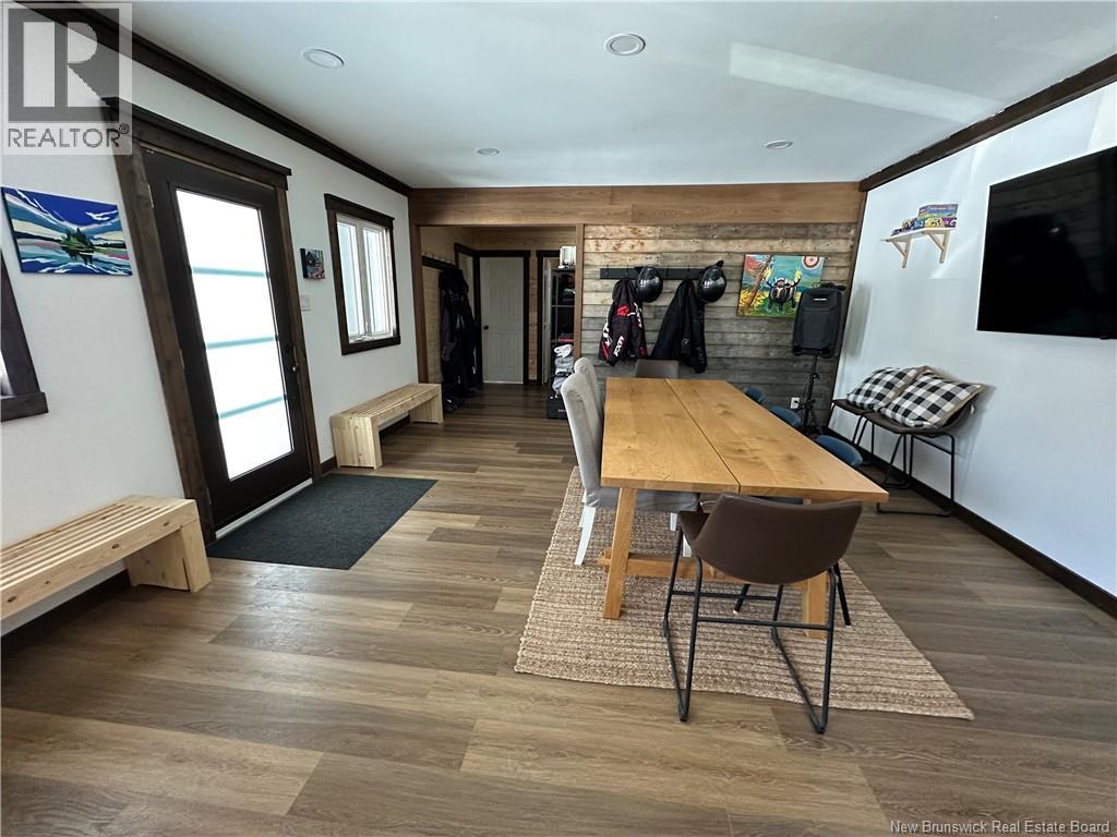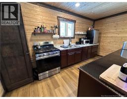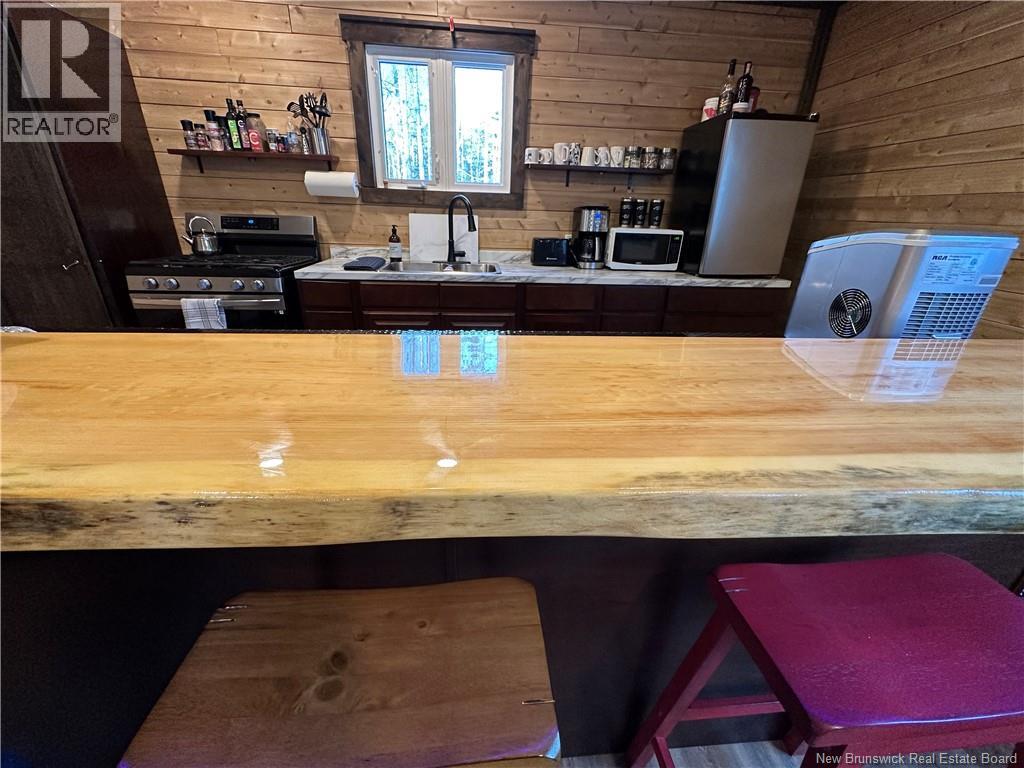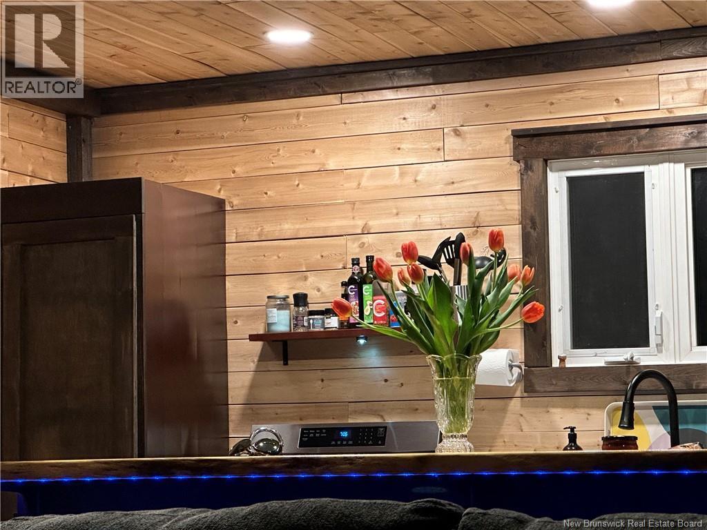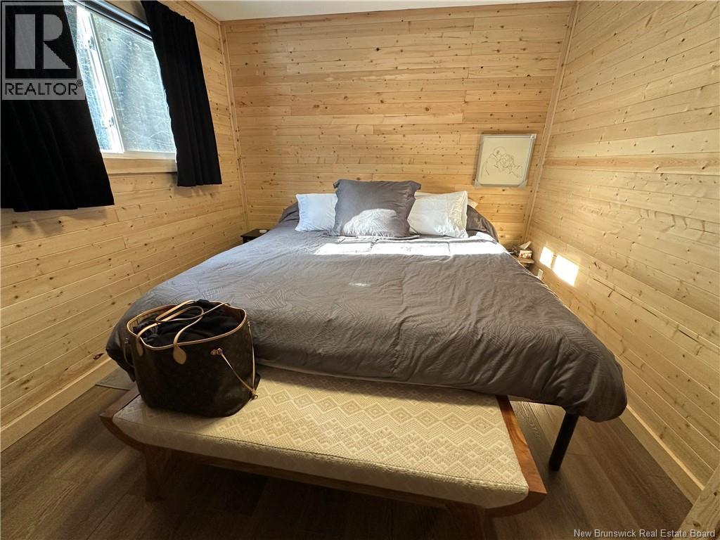 Are you an avid snowmobiler or nature enthusiast? This is an ideal spot for a family to enjoy weekends in the country enjoying their toys side by sides, snowmobiles.. this cluster is one of the only ones where the road is open and you can drive in year round with your car! Off grid living this camp has all the comforts of home and offers 3 bedrooms, a full bathroom with tub/shower, kitchen with island/bar with live edge bar top, plenty of wood cabinets, propane lines for stove and hot water on demand, slow start well pump set up using little power draw ideal for this set up. New wood stove this winter and new chimney, metal roof and addition to building done since purchased expanding it to the current size approx 1100 sq ft. Vinyl plank flooring throughout. Well and septic installed, covered front porch and skirting around camp, storage shed wired for generator and electrical panel in camp. Star link service works great here providing wifi for internet and tv services. Land is a crown lease not owned. Vendor is a licensed real estate salesperson in the Province of New Brunswick. (id:32432)