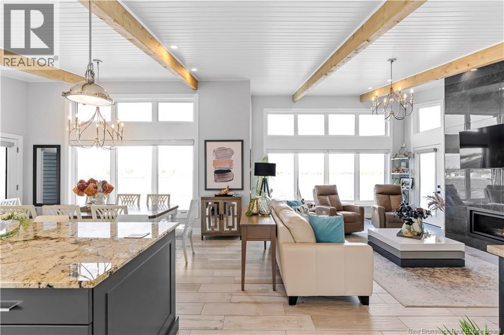 Whether youre searching for the ultimate riverside cottage escape or a sleek year-round residence, this exceptional property delivers. Situated on a dbl lot along the Richibucto River, this newly built modern home offers breathtaking views of the Rexton Bridge, the historic United Church, & a serene stretch of shoreline with armour stone & beautiful beachfront. The exterior is thoughtfully landscaped with impressive natural stone, established perennial gardens, & spacious front deck perfectly positioned to capture the view. Inside, bright open-concept living creates an inviting atmosphere. The main level is designed for both everyday comfort and hosting, featuring a cozy fireplace & chef-inspired kitchen with an oversized island, abundant cabinetry, & high-end finishes throughout. This home offers 2 good size bedrooms, including a stunning primary suite complete with spa-like ensuite with a soaker tub & walk-in shower. A second full bath with a sleek walk-in shower for added convenience & style. A 4.5-ft crawl space provides excellent additional storage. Forward-thinking design includes completed building plans & designated space for a future attached garage. Enjoy the convenience of being within walking distance to local shops, restaurants, & amenities, just minutes to beaches and outdoor recreation, 10 minutes to Saint-Anne Hospital, and approximately 50 minutes to Moncton or Miramichi. Waterfront living, modern comfort, and unbeatable location, all in one. (id:32432)