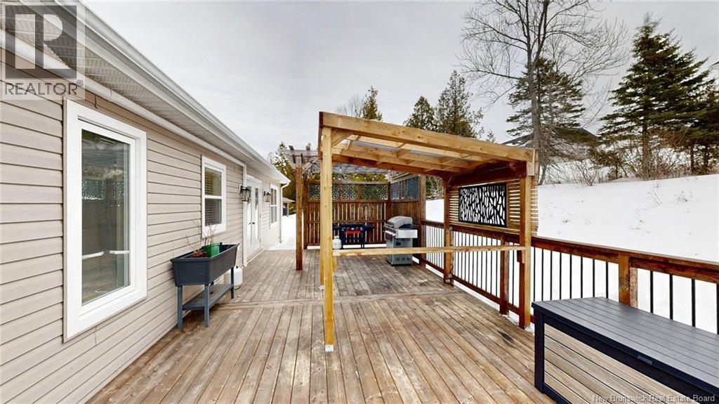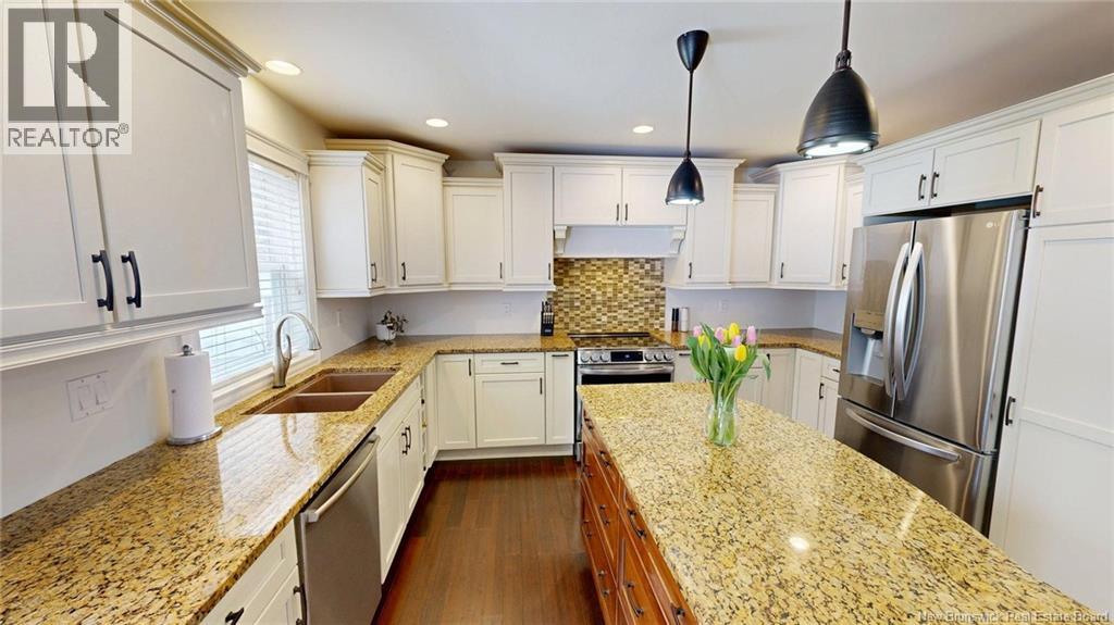 Welcome to 18 Harvest Court a charming Cape Cod style bungalow with Kennebecasis River views . This lovely home features a large front veranda to enjoy the evening sunsets, a landscaped yard that has great curb appeal as well as a large back deck for entertaining. The main floor features a good size front living room featuring an electric fireplace built into open book shelves with a spot for your tv over the fireplace. There is also a dining room with patio doors leading to the back deck and fire pit, a good sized kitchen with an island , white soft closure cabinets, stainless steel appliances , granite countertops , double sink and plenty of natural light. Off the living room is your laundry room /mud room, entrance to your 1.5 garage , primary bedroom with his/hers walk in closets and an outstanding spa like ensuite with soaker tub , glassed shower and double sinks. Two additional bedrooms and a second full bath are also found on the main floor level, great to have the kids close by. Lower level basement is unfinished but provides plenty of storage, plumbed in for a bathroom and a great opportunity to create your own family room /games room. This home is situated on a quiet cul-de sac in a great neighborhood. Pride of ownership is evident throughout this lovely home. Book your private show today. (id:32432)
