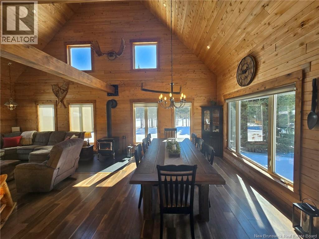 ONE OF A KIND! If youve been dreaming of complete privacy surrounded by nature, this extraordinary property delivers. Nestled on 192 acres of beautifully maintained land, the property features landscaped roads and walking trails through the woods, along brooks, and around a peaceful fishing pond. Ideal for outdoor enthusiasts or horse lovers, the land also offers open fields, a barn, and fencing ready for horses. Set far back from the road, the home is accessed by a long crushed rock driveway, creating a truly private retreat. The grounds include a large pond with a water fountain, a relaxing outdoor gazebo with a built-in fireplace, and a cozy firepit area perfect for evenings under the stars. A 34x34 detached garage, only four years old, is heated and includes its own bathroom, plus additional storage sheds. The cedar log home, approximately eight years old, offers warmth and an inviting open-concept design. A spacious mudroom welcomes you inside with a wood stove and storage. The main living area features high ceilings with exposed beams and flows between the kitchen, dining, and living spaces. The kitchen has granite countertops, while the living room includes another wood stove and a heat pump for year-round comfort. The main floor also offers a full bathroom, laundry, and bedroom. Upstairs, an open loft overlooks the living room and leads to a large bedroom with a two-piece ensuite. This property offers privacy, nature, and comfort in a stunning setting. (id:32432)
