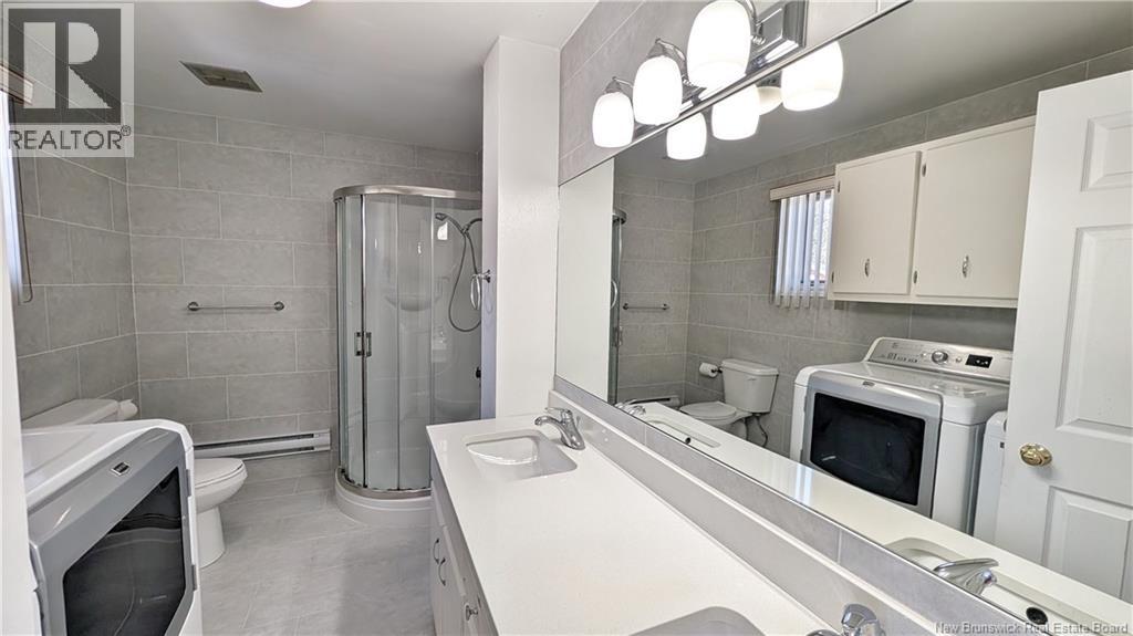 When Viewing This Property On Realtor.ca Please Click On The Multimedia or Virtual Tour Link For More Property Info. Located in the quiet area of Dugas Office with quick access to Route 11, this all-brick home built in 1971 offers great potential on a private 1.55-acre wooded lot. The main floor features an open-concept living room and kitchen, one bedroom, and a bathroom with a shower. Appliances including stove, refrigerator, washer, and dryer are included. The fully finished basement offers two additional bedrooms, a family room, and flexible space for various needs. The property has seen several updates, including a roof replaced approximately 11 years ago, PVC windows, a 200-amp electrical panel, a French drain system, and an exterior sump pump for added protection against water. Heating is electric, complemented by a wood furnace located in the garage. Outside, youll find an asphalt circular driveway, a double attached garage, and a detached garage with independent power and commercial-grade three-phase electricity, ideal for a workshop or project, although it requires some work. A great opportunity in a peaceful setting, just a short drive from Tracadie and Caraquet. (id:32432)