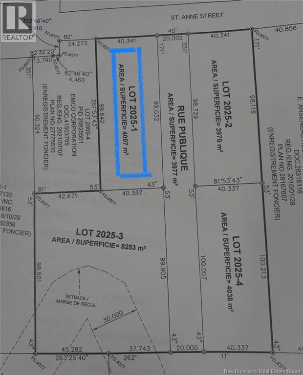 Dont miss this rare chance to own one of the last vacant commercial lots on St. Anne Street, Bathursts high-traffic commercial hub! This parcel, strategically located right next to the Highway 11 exit, offers unparalleled visibility with over 20,000 daily vehicles passing by. Perfectly positioned in the heart of Bathursts bustling retail and service district, its surrounded by major retailers, restaurants, and offices, ensuring maximum exposure for your business. Zoned for versatile commercial use, this flat, cleared lot is ideal for a retail plaza, office complex, restaurant, or mixed-use development. With significant frontage on St. Anne Street, it provides easy customer access and ample space for parking or large-scale construction. Secure this unique investment in a thriving economic area before its gone! (id:32432)